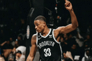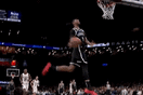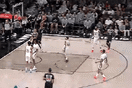 NBA常规赛,篮网主场迎战鹈鹕的比赛正在进行中。比赛的第三节,小波特前场抢断送背传,助攻扎威快攻大风车扣篮打进。