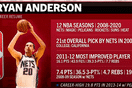虎扑12月07日讯 NBA常规赛,鹈鹕客场对阵篮网的比赛正在进行中。比赛的第三节,转播画面给出一组信息,内容为在鹈鹕和篮网都征战过的前NBA球员莱恩-安德森的生涯概况回顾,详情如下:安德森在2008~